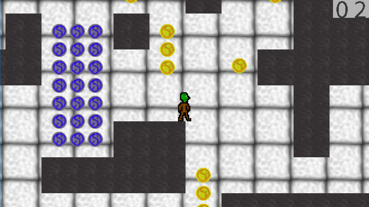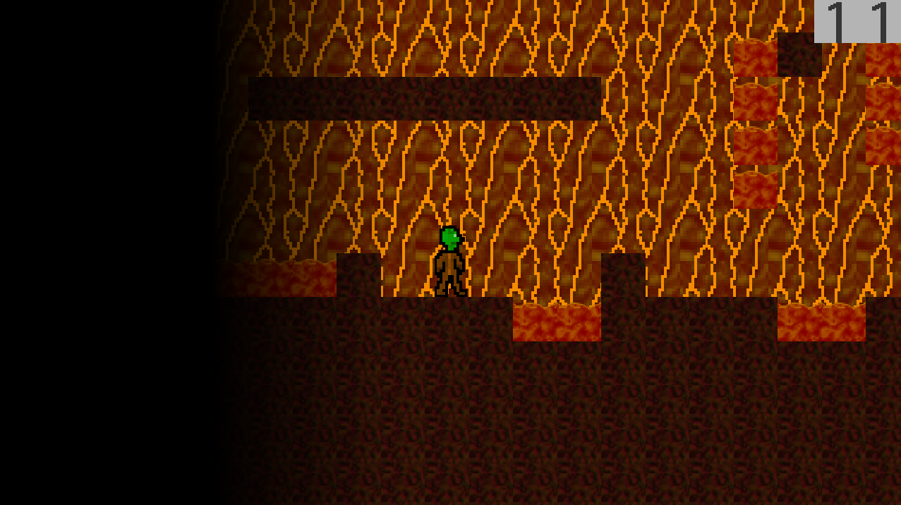 The big gimmick is that coins will slow you down, so you want to manage how many coins you collect. On the first level, there are only coins. On the second level, there is lava that can kill you, and a dark wall that will slowly drain you gold, then your life.